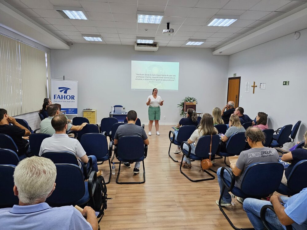 A Semana Pedagógica 2025 foi um espaço para reflexões e alinhamentos importantes para o novo ano letivo. Com discussões sobre inovação no ensino, fortalecimento dos vínculos com os estudantes e a valorização do bem-estar docente, o evento reafirmou o compromisso da FAHOR com a excelência acadêmica e o desenvolvimento contínuo dos professores.