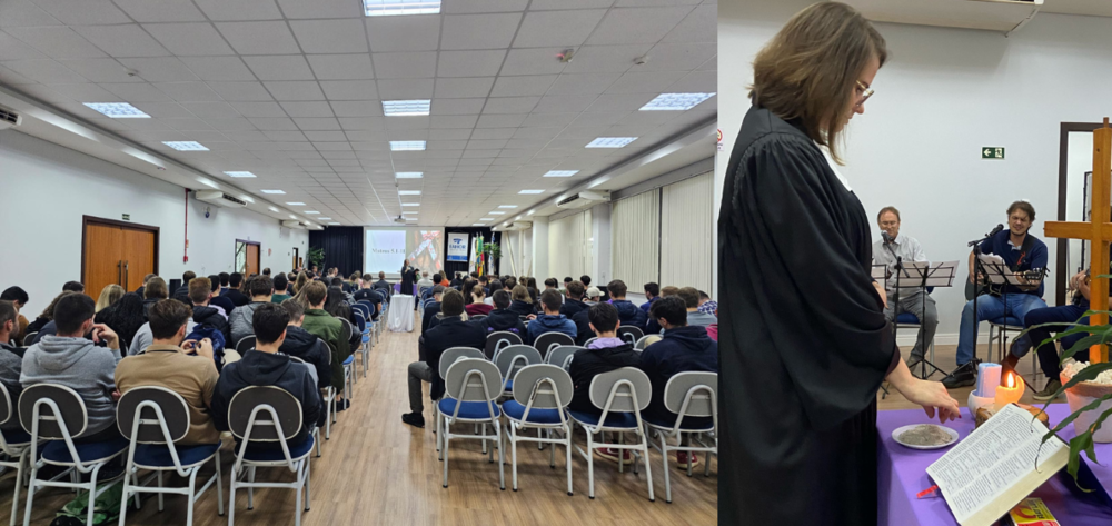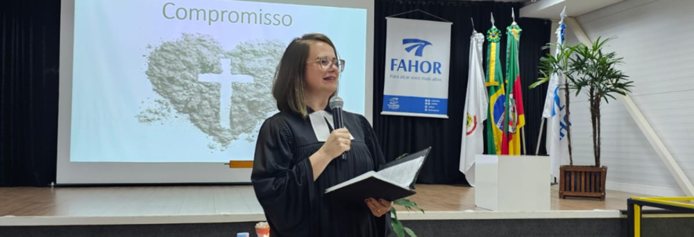 Professores, alunos e colaboradores da FAHOR, participaram na noite desta terça, 08, de um momento reflexivo no auditório do Campus. A Pastora Daiana Ernest Schwalbe, conduziu a celebração de preparação à Páscoa, que teve a participação de professores e alunos também nos cantos ecumênicos.