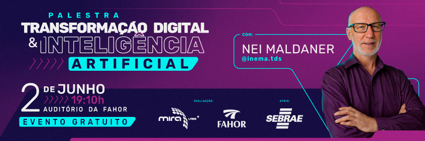 Para quem deseja se aprofundar no tema, a parceria entre a FAHOR, a Mira Labs e Nei Maldaner oferece ainda a formação, com 24h divididas 3 dias focados em "Transformação Digital e Inteligência Artificial", 3, 4 e 5 de junho, manhãs e tardes, também no Auditório do Campus Arnoldo Schneider.