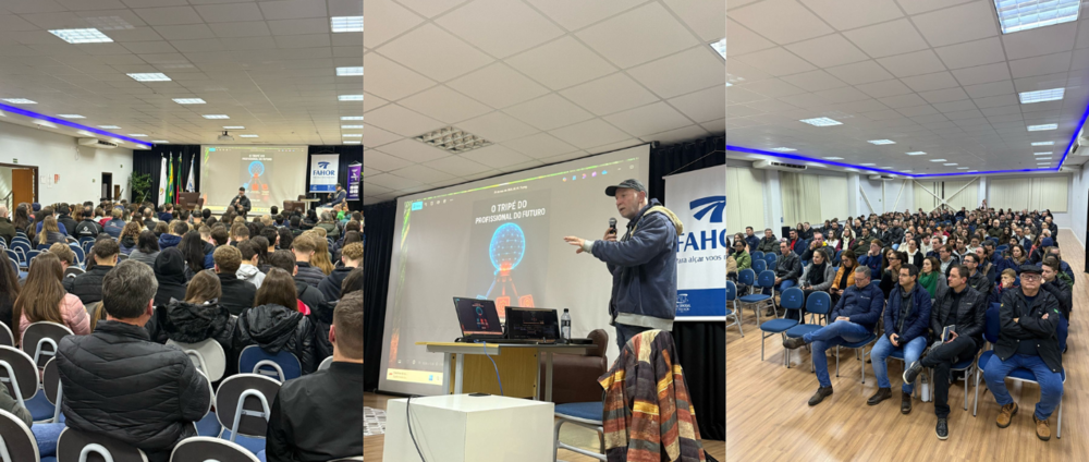 Na noite desta segunda-feira (2), a FAHOR recebeu Nei Maldaner (@inema.tds), um dos principais nomes da tecnologia da informação no Brasil, para uma palestra sobre Transformação Digital e Inteligência Artificial. O evento reuniu estudantes de ensino médio, ensino superior, egressos, empresários, profissionais de diversas áreas interessados em compreender como as ferramentas digitais podem potencializar carreiras e negócios.