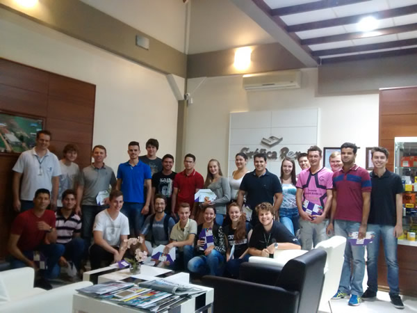 O professor Sirnei César Kach organizou uma visita técnica à Gráfica Rex, em Nova Candelária, com seus alunos da disciplina de Introdução à Engenharia de Produção, no dia 11 de abril. Após a recepção pelos profissionais da empresa Milton Rodrigues – Gerente de Operações, Igor Lermen – Gerente da Qualidade, Robson Roehrs – Analista de PCCM e Luana Huber – RH, os acadêmicos assistiram uma apresentação da empresa, sua história, evolução e investimentos em tecnologia que a organização permanentemente realiza.