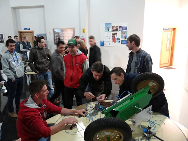 A 2ª Mostra de Mecanismos Mecânicos FAHOR, realizada no dia 29, apresentou 9 trabalhos relacionados à elevação e movimentação de carga. Os acadêmicos, em grupos, elaboraram os projetos e apresentaram às demais turmas no hall do prédio da Engenharia Mecânica, explicando os mecanismos criados com base no aprendizado das disciplinas de Projeto de Produto, Elementos de Máquinas, Física e Desenho.