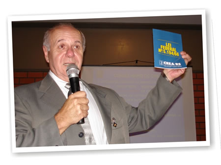 Após ser apresentado pelo Vice-diretor de Ensino Superior, Prof. Cesar Antônio Mantovani, o palestrante foi ouvido atentamente por estudantes e professores. Ary falou sobre a importância da legalização dos profissionais de engenharia para o mercado de trabalho.