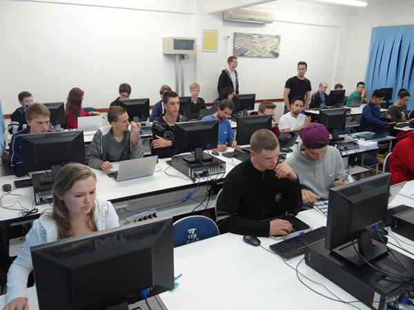 Os 30 aprovados nas duas etapas anteriores (prova e teste vocacional) estão participando deste treinamento, que envolve lógica e programação. Os professores Fabrício Desbessel e Paulo Bechaire, estão ensinando os alunos a criar algoritmos utilizando a lógica, estruturas sequenciais, estruturas condicionais, estruturas de repetição, procedimentos, funções e vetores. A cada aula os alunos exercitam os conteúdos ministrados através de uma lista de questões e ao final, recebem um desafio para entregar no dia seguinte.