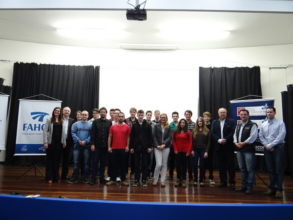 Nesta segunda-feira, 15, foi realizada a Aula Inaugural do curso Técnico em Informática do CFJL/FAHOR, em parceria com a Tecnicon, um projeto que visa a qualificação e a inserção de pessoas no mercado de trabalho na área de tecnologia da informação. O projeto ofertou 17 vagas de trabalho e curso técnico em informática gratuito, realizando um processo seletivo em quatro etapas, com mais de 200 inscritos de diversos municípios da região. Foram selecionados 17 alunos que iniciaram o curso na segunda-feira, e assinaram um termo de compromisso firmando um acordo de que, em dois anos, concluirão seus estudos neste curso, e em seis meses, poderão iniciar a trabalhar na empresa Tecnicon. Na oportunidade, as instituições também assinaram um termo de cooperação que define as atribuições e os investimentos de cada parte envolvida.
