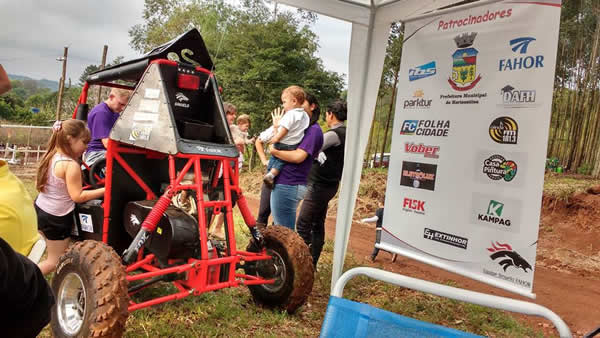 O carro off road construído por acadêmicos da FAHOR atraiu grande público que visitou o estande, trocou ideias e sanou dúvidas sobre o veículo e os cursos da faculdade. A equipe está se preparando para a próxima competição, que será em novembro, em São José dos Campos/SP.