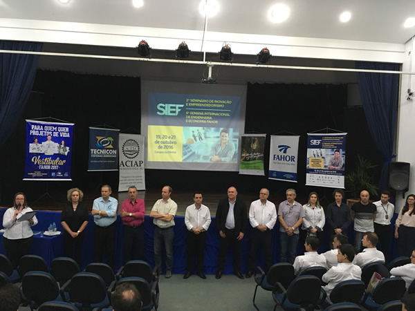 Nesta segunda-feira, 10 de outubro, aconteceu o lançamento da SIEF - 6ª Semana Internacional de Engenharia e Economia FAHOR e 2º Seminário de Inovação e Empreendedorismo com a presença de prefeitos municipais, representantes e presidentes das ACI's da região. O auditório FAHOR centro foi o palco, onde em conjunto com o Diretor Sedelmo Desbessel e o vice-diretor Marcelo Blume todas essas autoridades e patrocinadores conheceram toda programação da SIEF.
