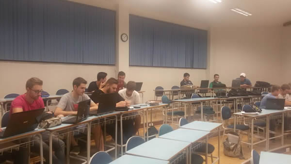 Na noite desta segunda-feira, a turma de engenharia mecânica da FAHOR, na disciplina de Física III, com a professora Valéria Bonetti, teve uma aula prática de resistores. Na noite os alunos estudaram os resistores, capacitores, transístor e outros componentes elétricos.
