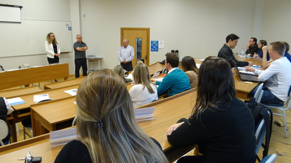 Com a presença do Diretor da FAHOR Sedelmo Desbessel e da Coordenadora do MBA, Cátia Felden Bartz, foi iniciada a primeira aula do MBA em Gestão Empresarial da FAHOR, nesta sexta-feira, 28 de outubro.