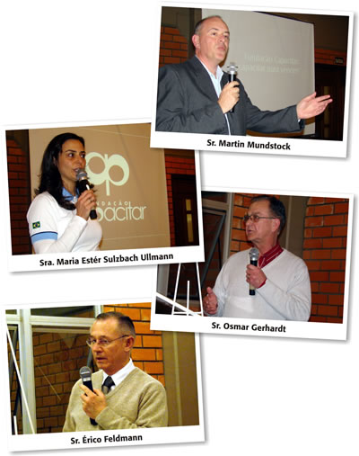 Durante o evento, que teve como tema “Fundação Capacitar: capacitar para vencer!”, os Srs. Osmar Gerhardt e Érico Feldmann puderam trazer, através do depoimento de suas histórias de vidas, uma palavra de motivação, mostrando que tudo na vida é possível, desde que as pessoas lutem, com muita força de vontade, pelos seus sonhos.