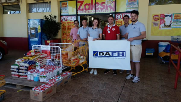 O Diretório Acadêmico da FAHOR está engajado na campanha beneficente "Campeão do Mundo é quem colabora", em prol do Hospital Oswaldo Cruz de Horizontina. A atividade está arrecadando alimentos e troco solidário em parceria com o Consulado do Inter e com supermercados do município. Quem quiser ajudar, pode depositar sua doação nas caixas ou nos cofrinhos disponíveis no campus e no centro. Em algumas noites, os integrantes do DAFH estão passando nas salas de aula para reforçar a campanha e coletar as doações.