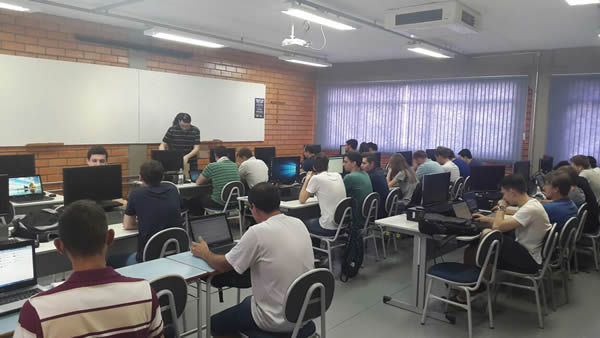 A turma de 30 alunos vai aprender os princípios e aplicações de microcontroladores, ambiente de programação e simulação, recursos do Hardware, leitura e escrita digital no Hardware, programação básica com exemplos práticos, compilação, simulação e gravação do software, leitura analógica, interface com Display LCD 16x2, controle por PWM, interface com motores e servo motores e muitos exercícios práticos.