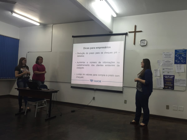 Na última semana, foram apresentados os resultados da pesquisa sobre inadimplência no comércio de Horizontina, realizado pelos acadêmicos de Ciências Econômicas da FAHOR na disciplina de Estatística Econômica. A professora Cassia Bordim Santi juntamente com os acadêmicos, Ana Paula Dalla Lana, Anderson Rafael Pollo, Bruna Carolina Moentke, Hilton Kretzmann, Jackson Giovan Lipke, Jaqueline Laila Cansi, Jean Frantiesco Dalcin, Joici Cristiani de Souza, Larissa Franus, Mariele Aline Müller, Noeli Dreissig Hirt, Rogério André Beling, Sabrina Lucas, Taís Raiela Müller, Vanessa Andreia Maron e Vinícius Bonapaz montaram um questionário com 10 indagações sobre inadimplência e pesquisaram 5 áreas do comércio: lojas de vestuário, eletrodomésticos, supermercados, restaurantes e farmácias.