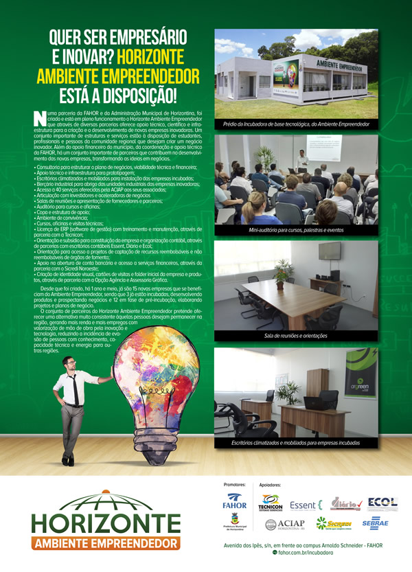 Horizonte Ambiente Empreendedor está à disposição.