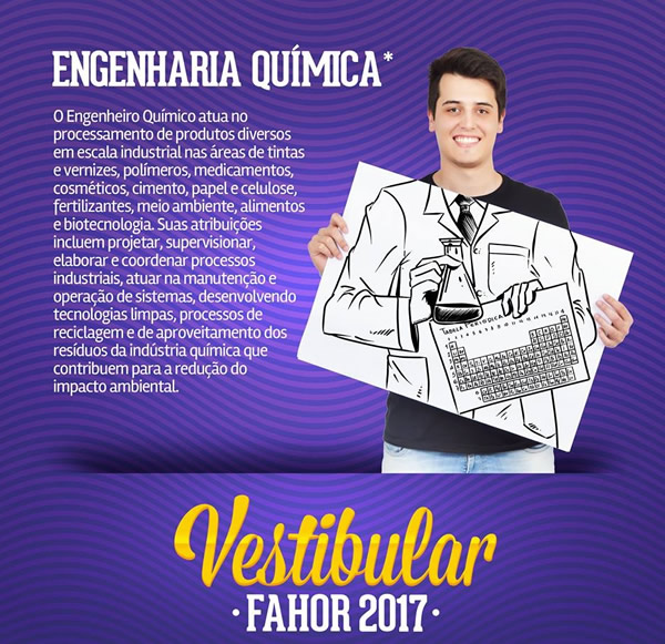Já o curso de Engenharia Química foi autorizado no dia 1º de dezembro de 2016, sob Portaria número 770 do Ministério da Educação, publicado no Diário Oficial da União. Os candidatos interessados em ingressar nesse curso terão como processo seletivo o vestibular 2ª edição da FAHOR com as duas datas acima mencionadas, podendo o candidato optar por uma das datas propostas. Sendo que o curso foi autorizado com disponibilidade de oferta de 35 vagas.