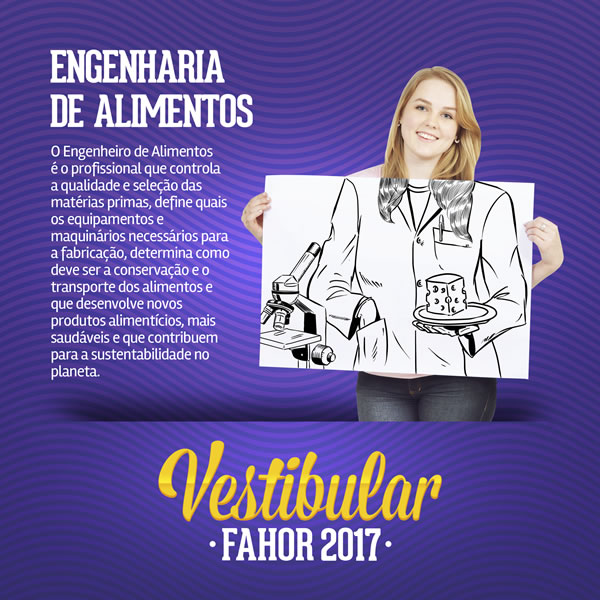 A FAHOR interessada e voltada na área de ciência e tecnologia inova e traz ao noroeste gaúcho mais dois cursos antes somente ofertados na região metropolitana, são os cursos de Engenharia de Alimentos e Engenharia Química. O curso de Engenharia de Alimentos foi ofertado no vestibular de verão primeira edição e ainda há vagas remanescentes para interessados no vestibular 2ª edição. O vestibular será realizado dia 7 ou 10 de fevereiro com somente uma prova de redação. Os interessados podem se inscrever pelo site vestibular.fahor.com.br.