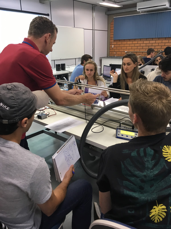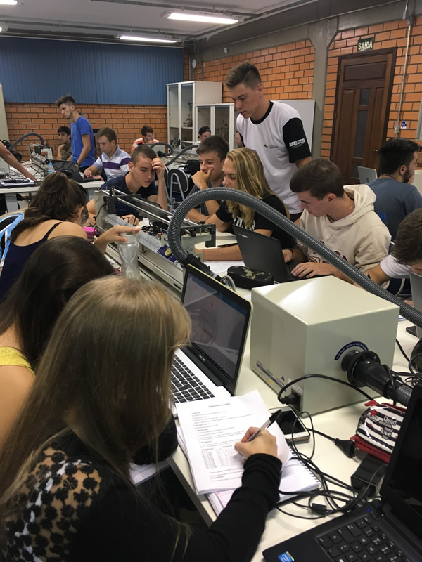 Nesta segunda-feira, 13 de março, os estudantes da disciplina de Física 1, que contemplam diversos cursos como Engenharia de Alimentos, Engenharia Química e Engenharia de Controle e Automação, estudaram os princípios do Movimento Retilíneo Uniforme (MRU) com os equipamentos que o Laboratório de Física da FAHOR oferece.
