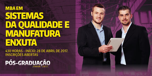 A FAHOR lançou a 2ª edição do MBA em Sistemas da Qualidade e Manufatura Enxuta. O curso tem o objetivo de formar profissionais com habilidades de investigação, análise e implementação de sistemas necessários à operação das atividades empresariais, incluindo processos produtivos, gestão associada à qualidade, melhoria contínua das operações produtivas, planejamento e controle da produção, e análise econômica das atividades da organização, promovendo o uso racional dos recursos para atingir objetivos e metas que tornem a organização competitiva e sustentável.
