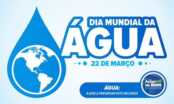 O dia 22 de março é lembrado como o Dia Mundial da Água. Esta data foi criada com o objetivo de alertar a população internacional sobre a importância da preservação da água para a sobrevivência de todos os ecossistemas do planeta.