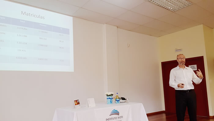 O evento relacionado à Câmara do Ensino Superior, que ocorre duas vezes por ano reuniu representantes das IES da Rede Sinodal para tratar de assuntos diversos, entre eles: análise do cenário atual e tendências das instituições da rede. Após este debate, a programação seguiu com uma palestra do presidente do SINEPE-RS (Sindicato do Ensino Privado), Bruno Eizerik. O dirigente colocou dados estatísticos sobre a educação no ensino superior e também apresentou a situação da manutenção da filantropia, que está sendo discutida na PEC da previdência.