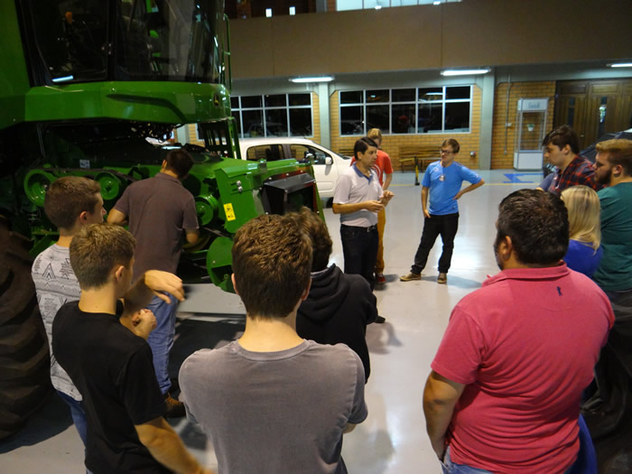 Na última terça-feira, 18, os alunos do curso da Engenharia Mecânica da FAHOR, na disciplina de “Tópicos Especiais em Engenharia Mecânica” participaram da última aula prática desta matéria. A disciplina ministrada pelo professor Luis Carlos Wachholz é focada em máquinas agrícolas, o que permitiu que os alunos ampliassem seus conhecimentos em relação a tratores, plantadeiras e colheitadeiras da John Deere, tendo em vista a parceria que existe entre as duas instituições.