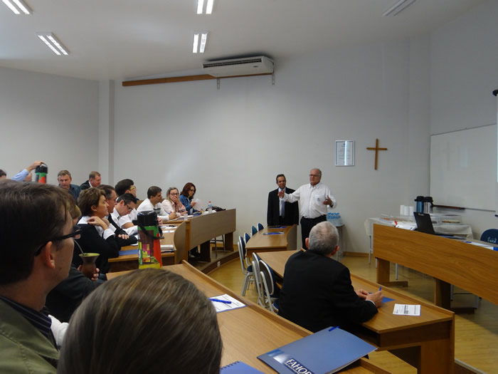 Na última terça-feira, 9, a partir das 14h30min, foi realizada nas dependências da FAHOR, a Reunião Regional do SINEPE/RS (Sindicato do Ensino Privado). Estiveram presentes mais de 20 dirigentes e representantes das instituições comunitárias e privadas de educação básica, profissional e superior da região. A reunião foi conduzida pelo presidente do SINEPE, Bruno Eizerik. Esta foi a segunda vez que a FAHOR sediou a reunião regional.