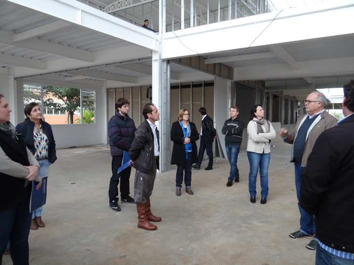 Na sequência, o grupo acompanhado pelo diretor da FAHOR e do CFJL, Sedelmo Desbessel e pelo vice-diretor da FAHOR, Marcelo Blume foi encaminhado aos laboratórios da FAHOR, onde o coordenador de cada curso pode explicar alguns projetos desenvolvidos e algumas possibilidades que podem ser elaboradas com o intuito de desenvolver economicamente e tecnologicamente o município.