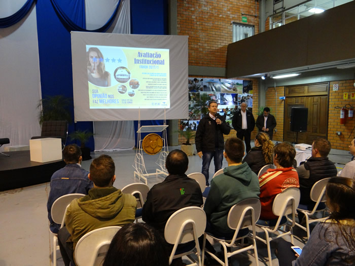 O coordenador da Comissão Própria de Avaliação da FAHOR, professor Fabrício Desbessel destacou a importância da avaliação para a tomada de decisões a partir do resultado dessa pesquisa. “Nessa etapa da Avaliação, vamos saber dos alunos suas opiniões quanto aos componentes curriculares, quanto a sua postura como aluno e quanto às práticas pedagógicas desenvolvidas. No segundo semestre, será a vez da infraestrutura ser avaliada”, destacou o professor Fabrício.