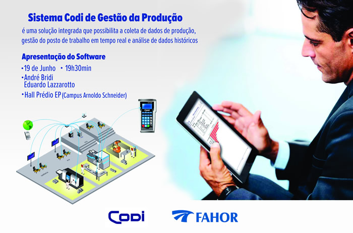 Na oportunidade estarão presentes os representantes da empresa, André Bridi e Eduardo Lazzarotto, que apresentarão aos estudantes a aplicação inovadora de tecnologia para gestão da manufatura.