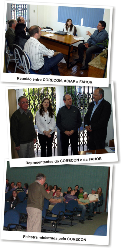 No dia 25 de agosto, estiveram em Horizontina dois representantes do Conselho Regional de Economia, o CORECON-RS. Na oportunidade, o Fiscal Antonio Pedro Hickmann e o Economista Gilberto Silva participaram, pela parte da tarde, de uma reunião com representantes da FAHOR e da ACIAP.
