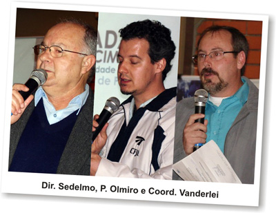 Abrindo o evento, Sedelmo Desbessel, Diretor da FAHOR, destacou a importância do momento para o curso. Depois, o Pastor Universitário Olmiro Júnior trouxe uma breve meditação que tratava sobre a temática central do evento. Em seguida, Vanderlei Eckhardt, Coordenador do Curso de Engenharia de Produção, destacou a presença de todos(as) e convidou alguns representantes da primeira turma de Engenheiros de Produção da FAHOR, cuja formatura acontece ao final deste ano, para falarem um pouco de suas conquistas ao longo de suas vidas acadêmicas.