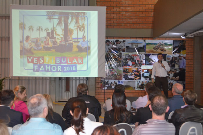 A campanha do vestibular foi apresentada pelo vice-diretor da FAHOR, professor Marcelo Blume, que falou sobre o novo Slogan: “Mais que um diploma, um projeto de vida”. Marcelo explicou que a FAHOR busca, junto com seus alunos, mais que um diploma de curso superior, ajuda a construir um projeto para suas vidas. Também foram apresentados aos presentes as peças que serão utilizadas para divulgação em meios impressos e digitais e o jingle, que será veiculado em emissoras de rádio da região.