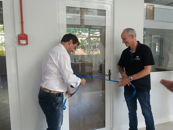 O diretor do CFJL/FAHOR, Sedelmo Desbessel saudou os colaboradores pelo seu dia e na sequência, junto com o vice-diretor da FAHOR, professor Marcelo Blume e do presidente da APF, professor Wilson Hirt, descerrou a fita que simboliza a vontade de perseguir novos caminhos.