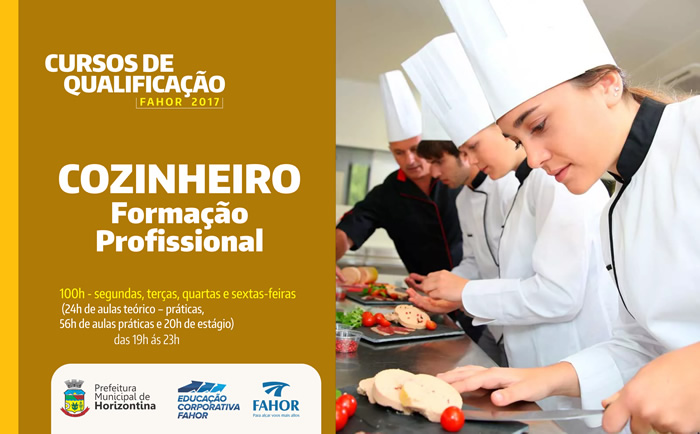 A Faculdade Horizontina, em parceria com a Prefeitura Municipal de Horizontina está com inscrições abertas para o Curso de Qualificação Cozinheiro – Formação Profissional. Esta formação é voltada, principalmente, para pessoas que atuam no ramo da alimentação ou que desejam ingressar neste mercado.