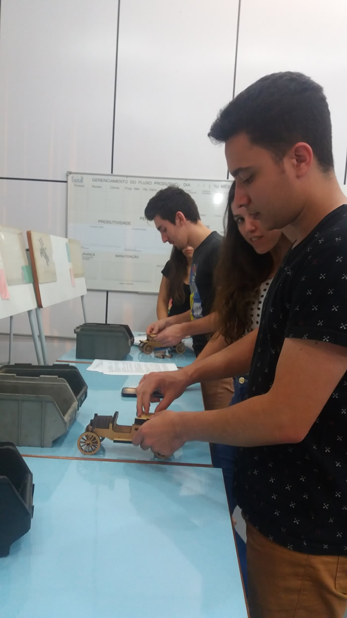 Foi proposto ainda um problema de alocação de tarefas utilizando a linha de produção do Ford T, o qual consiste em seis postos de trabalho, sendo que cada integrante do grupo deveria ser alocado por meio do cálculo do modelo matemático, visando minimizar o tempo total de produção. “Inicialmente foi cronometrado o tempo de cada integrante em cada posto de trabalho, elaborado o modelo matemático baseado nos tempos e depois, realizados os cálculos do modelo matemático alocando os integrantes aos respectivos postos de trabalho”, explicou Ivete.