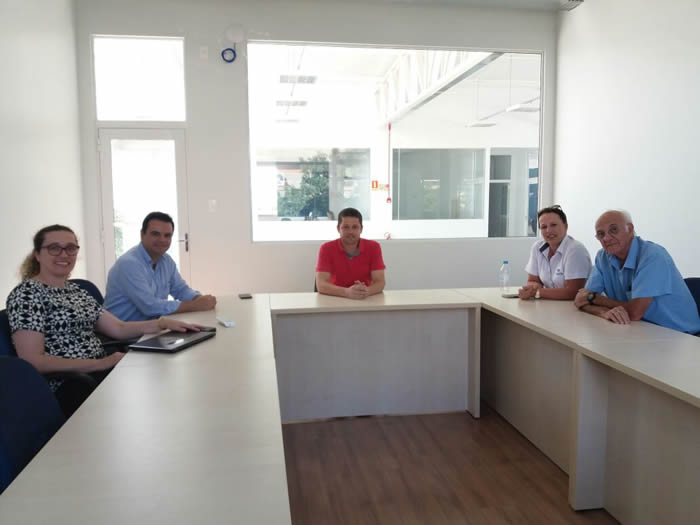 Para firmar a parceria reuniram-se o vice-diretor Marcelo Blume, a coordenadora do NAEMP - Núcleo de Apoio Empresarial Cátia Bartz e a coordenação do curso de Engenharia Ambiental, formada pelos professores Adalberto Lovato e Marliza Reichert, com o Diretor de Geoprocessamento da empresa, Vadenilson Patussi.