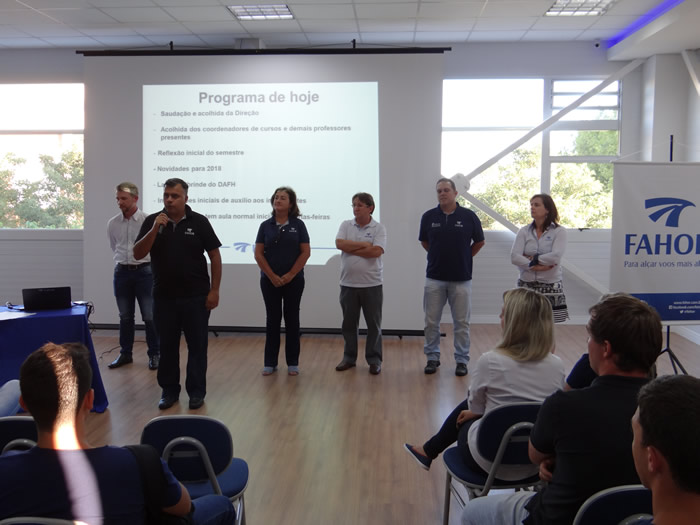 A busca por mais que um diploma, projetos de vida, também foi o tema da acolhida aos estudantes, realizada pelo Diretor Sedelmo Desbessel, que destacou a escolha feita pelos estudantes da FAHOR, pelas áreas de Engenharia e Gestão. Uma breve reflexão conduzida pelo catequista Claudio Becker, também motivou o grupo composto por estudantes, colaboradores e professores a se desafiarem e se dedicar a realizar seus projetos no ano de 2018.