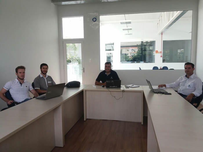 Para acertar os detalhes, estiveram reunidos com o representante da empresa, o vice-diretor da FAHOR, Marcelo Blume e os professores Cristiano dos Santos e Cristiano Ozinski. A Agrogel também contará com o apoio da professora Cátia Bartz, coordenadora no Núcleo de Apoio Empresarial, pois 70% do custo do produto será pago pelo Sebraetec, que apoia pequenas empresas no que se refere à inovação.