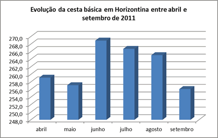 O levantamento de preços da cesta básica vem sendo realizado em Horizontina desde o mês de abril de 2011. A metodologia utilizada para efetuar esta pesquisa segue procedimentos do Departamento Intersindical de Estatísticas e Estudos Econômicos e a cesta básica é composta por treze itens alimentícios, cujas quantidades que compõem a cesta, são consideradas suficientes para a alimentação de um trabalhador adulto no período de um mês.