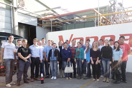 Os acadêmicos foram recebidos por Álvaro Bueno, Coordenador de Logística, Paulo R. Zarembski, Supervisor de Produção, Elda Gomes, Sistema de Gestão Integrada e Analista de Qualidade e Carlos Ely, Gerente Regional de Vendas.