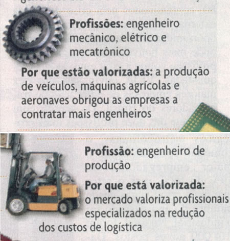Em recente matéria publicada na revista Veja do dia 8 de dezembro de 2004 intitulada: “A volta dos empregos”, as profissões de Engenheiro Mecânico e Engenheiro de Produção recebem destaque entre aquelas que o mercado procura.