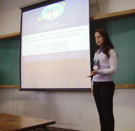 Entre os dias 24 e 28 de setembro, a acadêmica Mariel Rosana Pires, do Curso de Engenharia de Produção, apresentou artigos no "Congresso Internacional de Administração" realizado no Cineteatro Ópera, em Ponta Grossa (PR). Este é considerado um dos mais importantes eventos da área na América Latina.