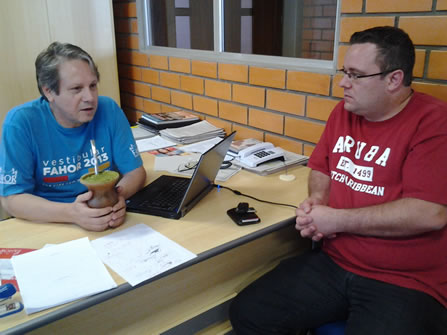Na ocasião, Gustavo Tomasi foi recebido pelo Vice-Diretor da instituição, Professor Cesar Antônio Mantovani, com quem conversou sobre a carreira profissional. "Após concluir o curso de Engenharia Mecânica na FAHOR, ingressei no mercado de trabalho e comecei a cursar mestrado" comentou o egresso.