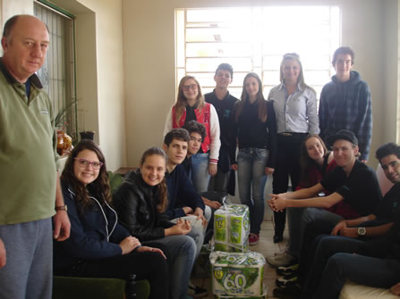 Em uma atividade de solidariedade e aprendizado, alunos do Grêmio Estudantil Borges de Medeiros do CFJL e as professoras do Projeto de Educação Financeira, Vonia Engel e Maria Aparecida Berwanger, visitaram a Comunidade Terapêutica São João Batista, em Ponte Pratos, para doar produtos de higiene pessoal e limpeza aos internos. A ação foi realizada nesta terça-feira, dia 6, como resultado de uma das propostas do 1º Varal de Ofertas: 10% da arrecadação foram destinados à compra dos produtos doados. O grupo foi recebido por estagiários que explicaram a rotina e o estilo de vida dos internos que se baseia em um tripé: oração, disciplina e trabalho. Os estudantes também ouviram depoimentos de dependentes em recuperação.