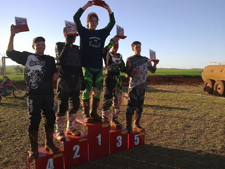 O acadêmico de Engenharia Mecânica da Fahor, Cristiano Rasia, conquistou o 1º lugar em duas categorias na 6ª etapa da Copa Ventura de Velocross, realizada no último final de semana em São Martinho. Mesmo concorrendo com uma moto mais fraca para as categorias disputadas em virtude de alguns problemas técnicos durante o treino, Cristiano estava bem preparado e venceu nas categorias Força Livre e Força Livre Principal.
