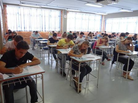 A Faculdade Horizontina recebeu centenas de candidatos na manhã deste sábado, 30 de novembro, para realizar as provas do Vestibular 2014. As provas iniciaram às 9 horas da manhã no campus Arnoldo Schneider, com 34 questões objetivas que contemplam as áreas de Língua Portuguesa, Literatura, Matemática, Física, Geografia, História, Química, Biologia e Língua Estrangeira e a prova de redação.