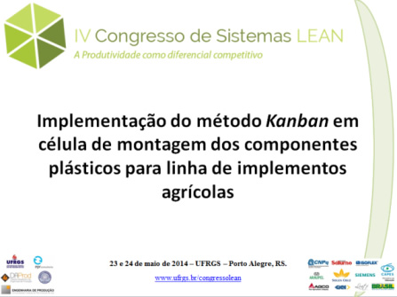 Sirnei é mestrando na UFSM e explica que o Sistema Lean foi originalmente concebido na indústria automotiva, mas está se disseminado nas mais diversas áreas e tipos de negócios, desde hospitais e aeroportos até instituições públicas. "Neste contexto, é vital tratar de sua aplicação de um modo mais abrangente, o qual faz parte dos objetivos do IV Congresso de Sistemas Lean", destaca. O Engenheiro conta que sua pesquisa evidencia a otimização de um processo de montagem de conjuntos de plantadeiras da linha agrícola, com implementação do 5S e sistema Kanban de abastecimento enxuto da produção.
