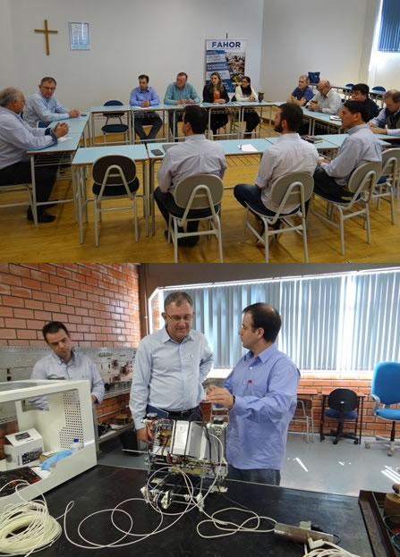 A equipe da direção, acompanhados dos professores com dedicação integral e funcionários da FAHOR receberam o novo gerente da John Deere- planta Horizontina, Gladimir Ames, para apresentações dos cursos, corpo docente e estrutura da faculdade, dando as boas vindas à Ames.