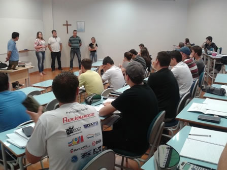 A turma do 4º semestre de Engenharia de Produção participou de uma roda de conversas com egressos e formandos do curso com o objetivo de intensificar os conhecimentos sobre a atuação profissional no mercado de trabalho. O professor Vilmar Bueno Silva coordenou a atividade, realizada no dia 8 de dezembro, e convidou os egressos Diana Pilz e Sandro Luís Haezel e os formandos Clóvis Luís Deves e Aline Beatriz Bartz para compartilhar experiências e falar sobre a área em que cada um atua dentro da Engenharia de Produção.