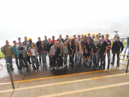 Conhecer o funcionamento de uma usina hidrelétrica de grande porte foi o principal objetivo da viagem de estudos realizada por acadêmicos de Engenharia de Produção e de Engenharia Mecânica da FAHOR no último final de semana. A turma foi até a Hidrelétrica de Itaipu, em Foz do Iguaçu/PR, e durante a visita, assistiram apresentação sobre o histórico da usina, desde o planejamento da construção na década de 60 até a instalação da última unidade geradora em 2007. Conforme o professor que acompanhou a turma, Fabiano Cassol, também foi realizado um passeio nas instalações e apresentados dados do projeto da construção como capacidade da barragem, altura de queda do reservatório, vazão de água, dimensões das turbinas e planejamento de manutenção.